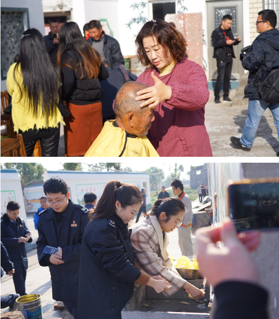 上午9時,黨員們來到勝鹽村后就各司其職,奔赴在各個“崗位”上開始忙碌起來,洗菜切菜、量血壓、理發、唱越劇、包餃子,現場充滿著溫馨和諧的氣氛。