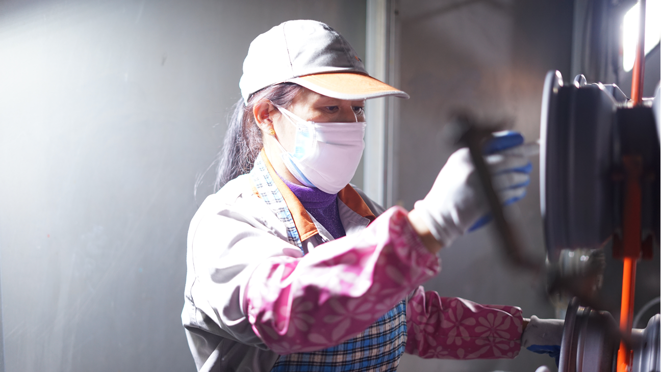 “剛開始進入崗位的時候,還是有些不太適應,只能強迫自己融入團隊,不斷提升自己技能,才能做好這個崗位。我在打磨產品的過程當中,也慢慢發現只有精益求精打磨出來的產品才能夠使下一道工序減少不良的產生,也給其他工序帶來一定的幫助,自己也感到很快樂。特別是在工作時幫助他人不斷提高工作質量,不斷專研打磨技巧,怎么樣用最快捷最方便的打磨技巧打磨產品,感覺到自己的進步,于是慢慢的就喜歡上這份工作?!边@是吳愛芳這份工作的簡單總結。